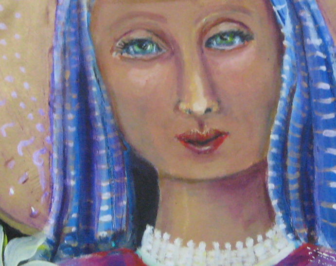 People never like a picture of themselves especially women. One paints a portrait and everyone but the person it is of, recognizes them! Frustrating....but I keep telling myself doing portraits is for my growth as a painter and I will not let silly little things get me down. However, I just did an imaginary face with some layering to complex the piece up and I really like it. So, I will share it with you-it is only 9x12, a jewel for fun.....